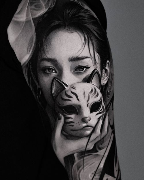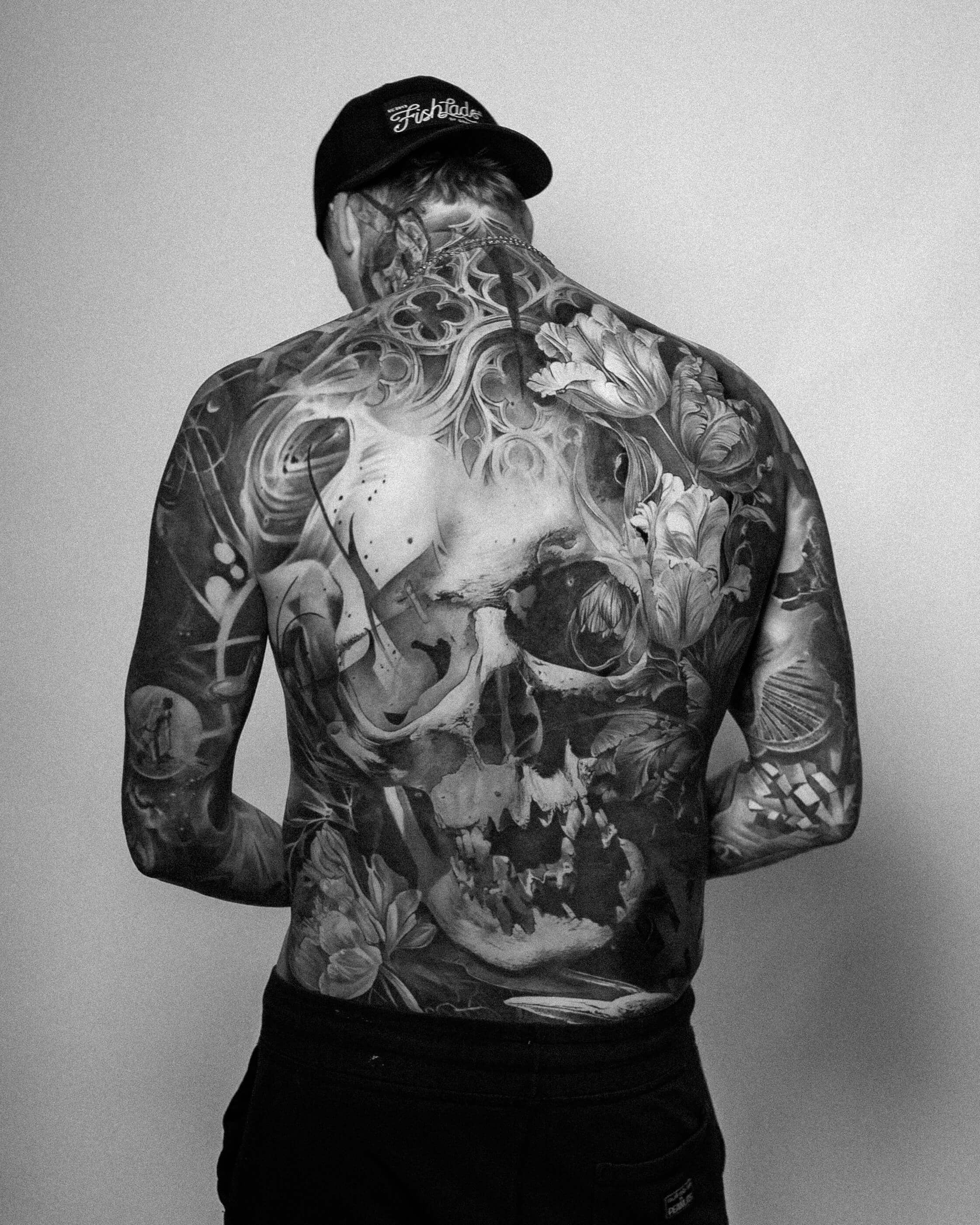 Stevo is known for black and grey realism, defined by smooth shading and a strong sense of flow. His tattoos are designed to age well and feel right on the body over time.